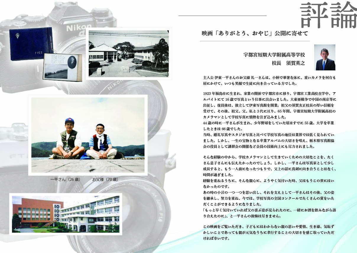 そのような素晴らしい映画祭にて、私たちの作品『ありがとう、おやじ』が上映されることは、制作委員会一同にとって大変光栄なことであります。